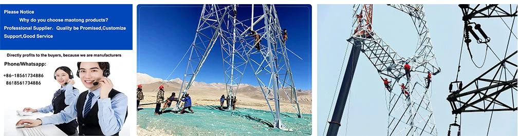 Mao Tong je strokovni vodja proizvajalcev električnih distribucijskih stolpov s kotnim jeklenim prenosom 500KV na Kitajskem z visoko kakovostjo in razumno ceno. Kotni jekleni stolp, električni stolp s štirikotno strukturo, z visoko kakovostjo Q345B kot glavnim materialom telesa stolpa, jeklena konstrukcija, majhna deformacija, kotna jeklena spojna povezava, deli so lahki, možno je popolnoma ročno upravljanje in namestitev, nizki stroški projekta, telo stolpa je lahko opremljeno s 6 plastmi ploščadi, na vsako plast ploščadi je mogoče obesiti 6 anten.