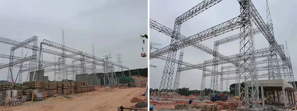 Popolnoma se razlikujejo od stolpov za prenos električne energije, ki se uporabljajo samo za podporo nadzemnih daljnovodov. Stolpi za prenos električne energije služijo samo kot nosilci za prenos visokonapetostne električne energije od točke A do točke B, brez transformacije napetosti ali krmiljenja moči. V nasprotju s tem so jeklene konstrukcije transformatorskih postaj popolni objekti, ki vključujejo funkcije transformacije napetosti, nadzora moči in distribucije električne energije, opremljene z osnovnimi komponentami, kot so glavni transformatorji, stikalna oprema in zaščitne naprave. So nepogrešljivi procesni in dispečerski centri v procesu prenosa električne energije. Oba sodelujeta pri oblikovanju celotnega omrežja za prenos električne energije.