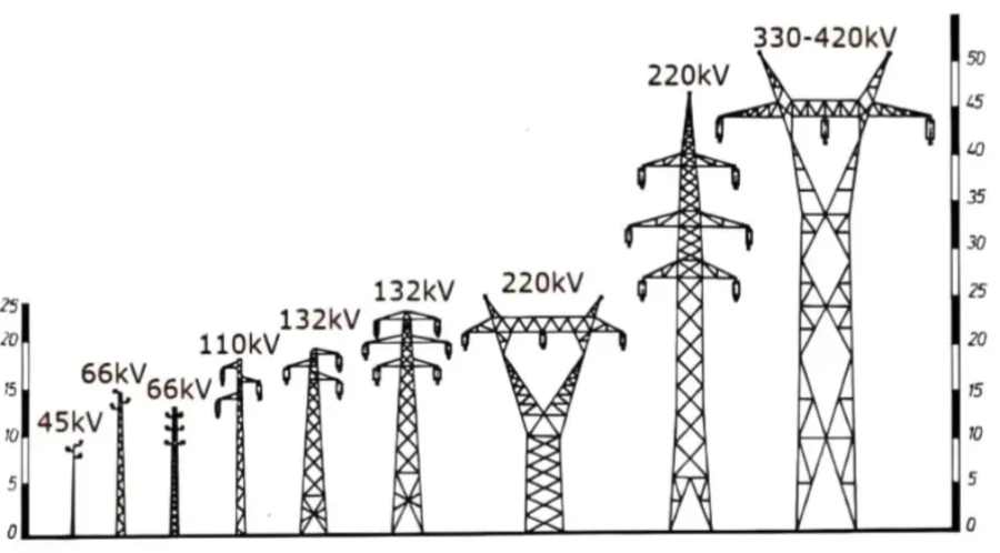 Med tem postopkom je naslednje razmerje med železnim stolpom in napetostjo prenosa in transformacije: